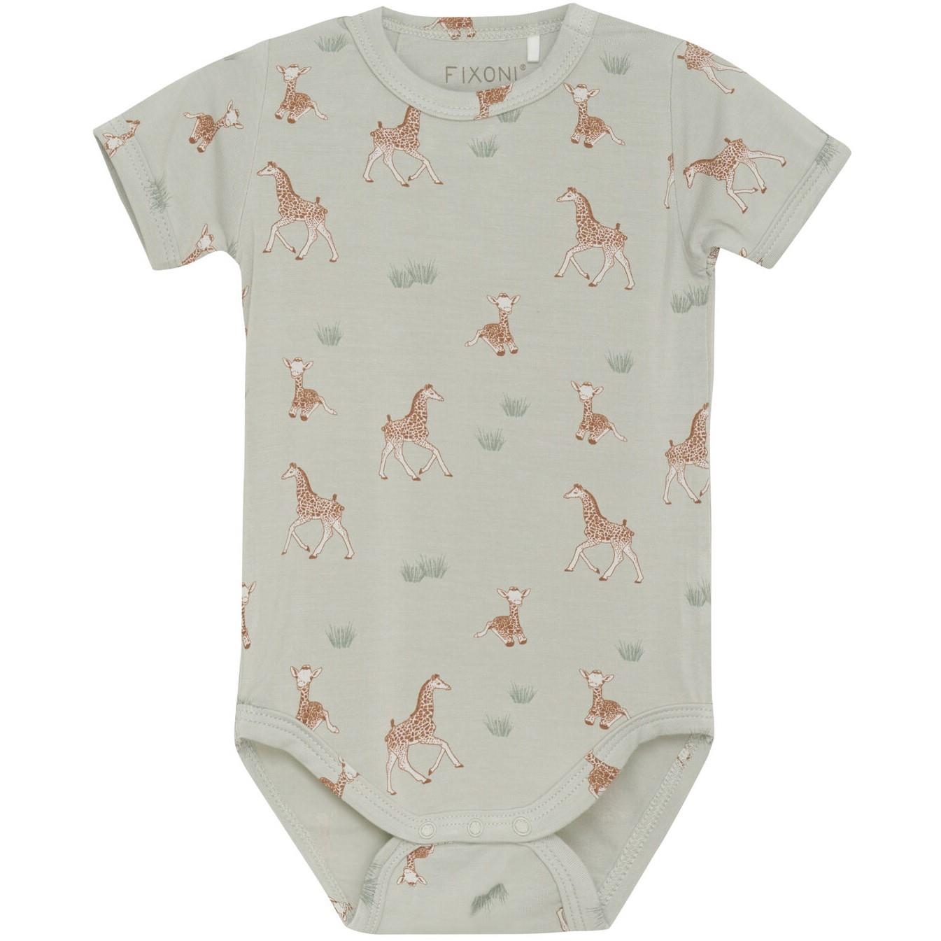 Fixoni body kort bambus lysegrøn med giraffer, str. 68, 74