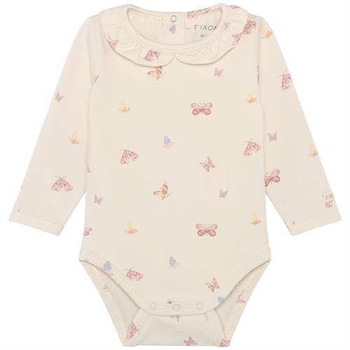 Fixoni body råhvid med sommerfugle - GOTS, str. 62, 68, 74