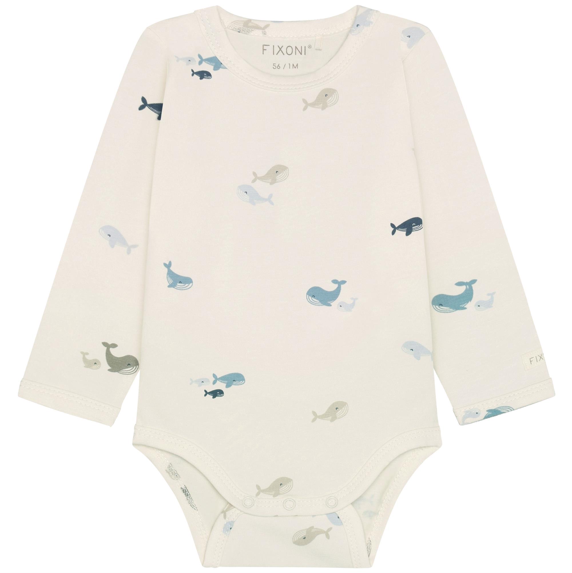 Fixoni body råhvid med hvaler - GOTS, str. 62, 68, 74