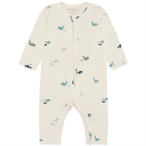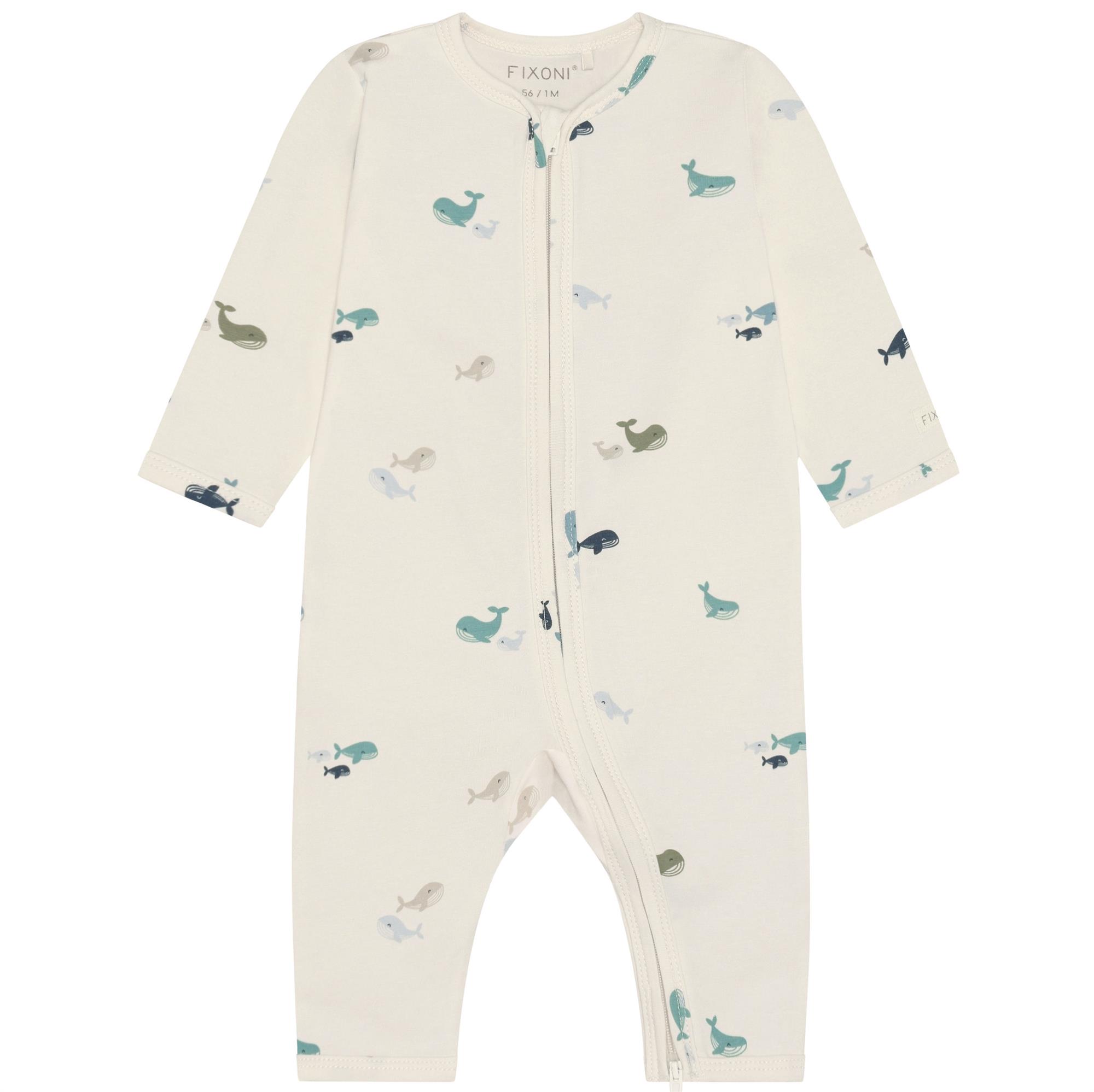 Fixoni heldragt råhvid med hvaler - GOTS, str. 56, 62, 68