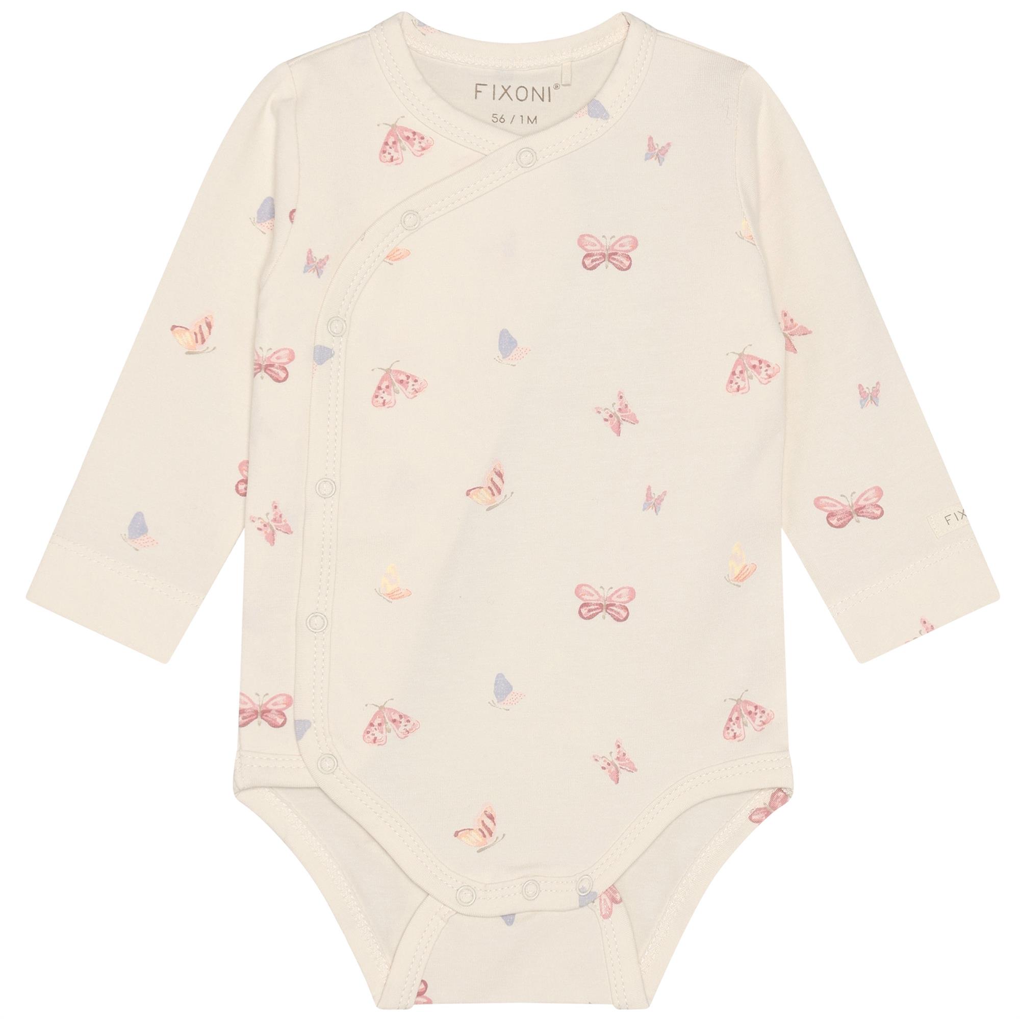 Fixoni slå om-body råhvid med sommerfugle- GOTS, str. 44, 50, 56