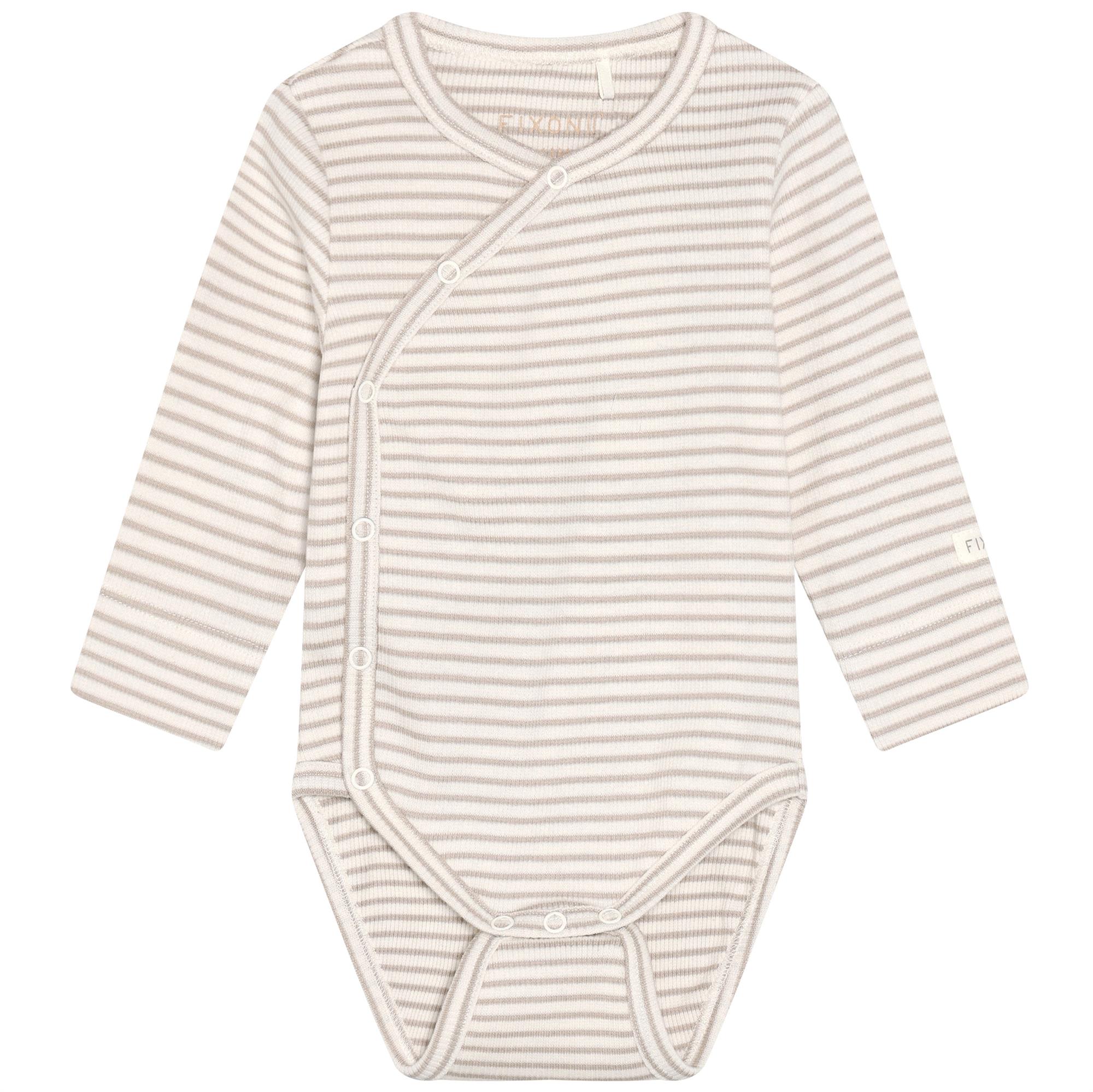 Fixoni slå om-body rib stribet råhvid og beige - GOTS, str. 44, 50, 56
