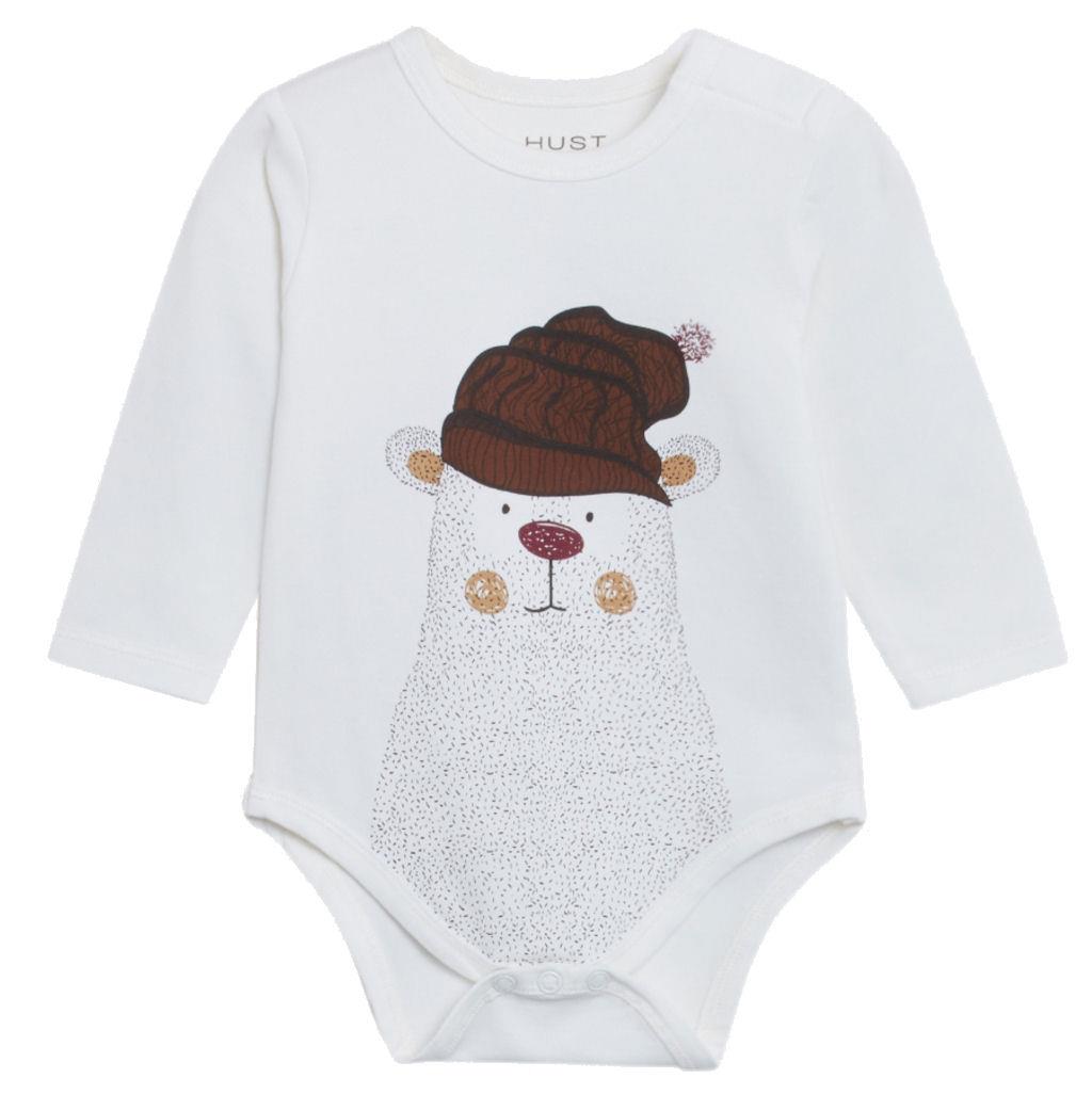 Hust & Claire body hvid med isbjørn - GOTS, 56, 68