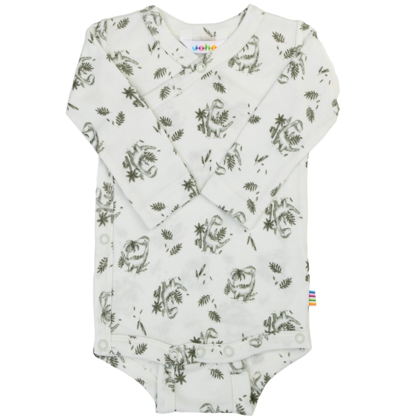 Langærmet slå om body i 100% økologisk bambus (viskose). Mintgrøn med dinoer.