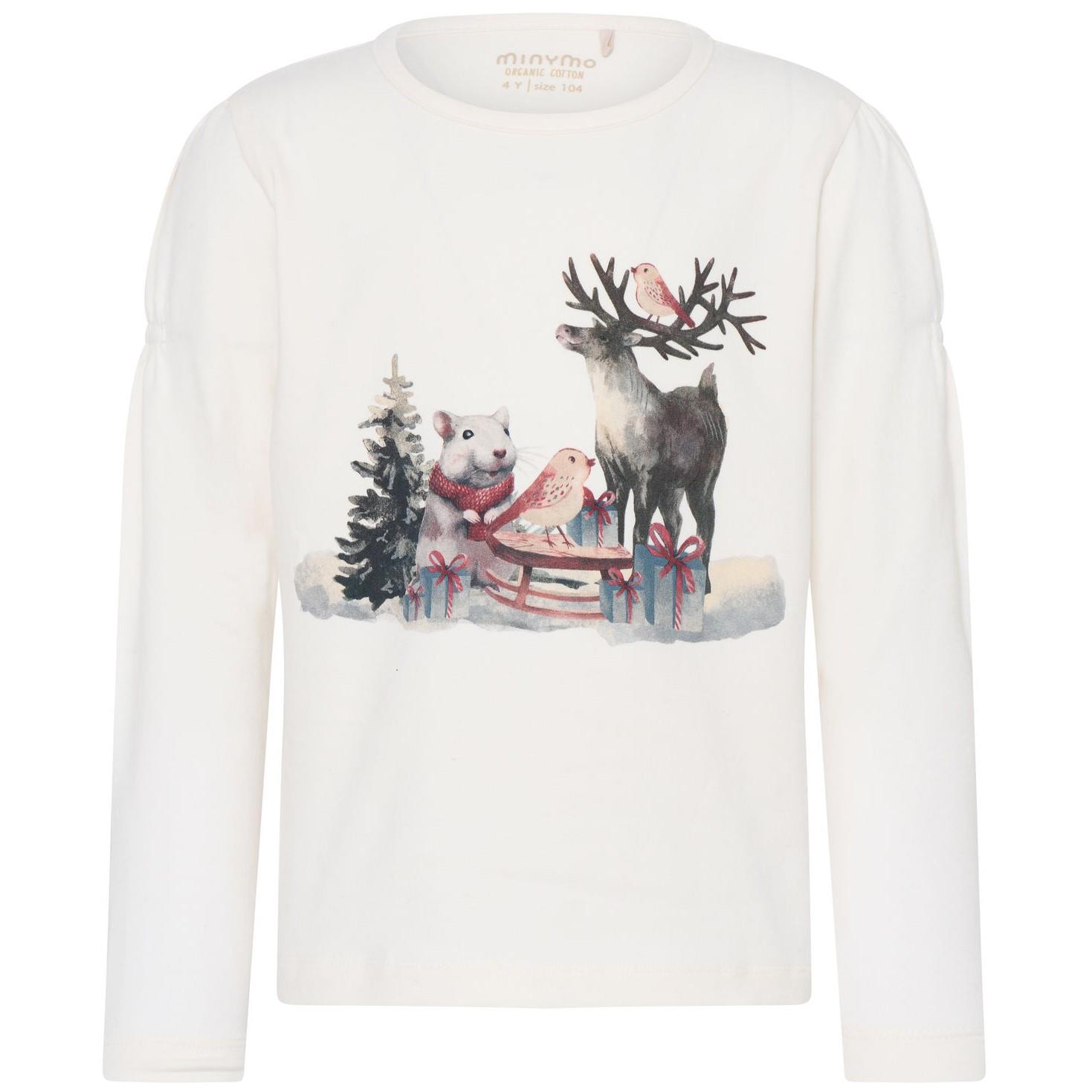Minymo bluse hvid med juleprint - økologisk, str. 92
