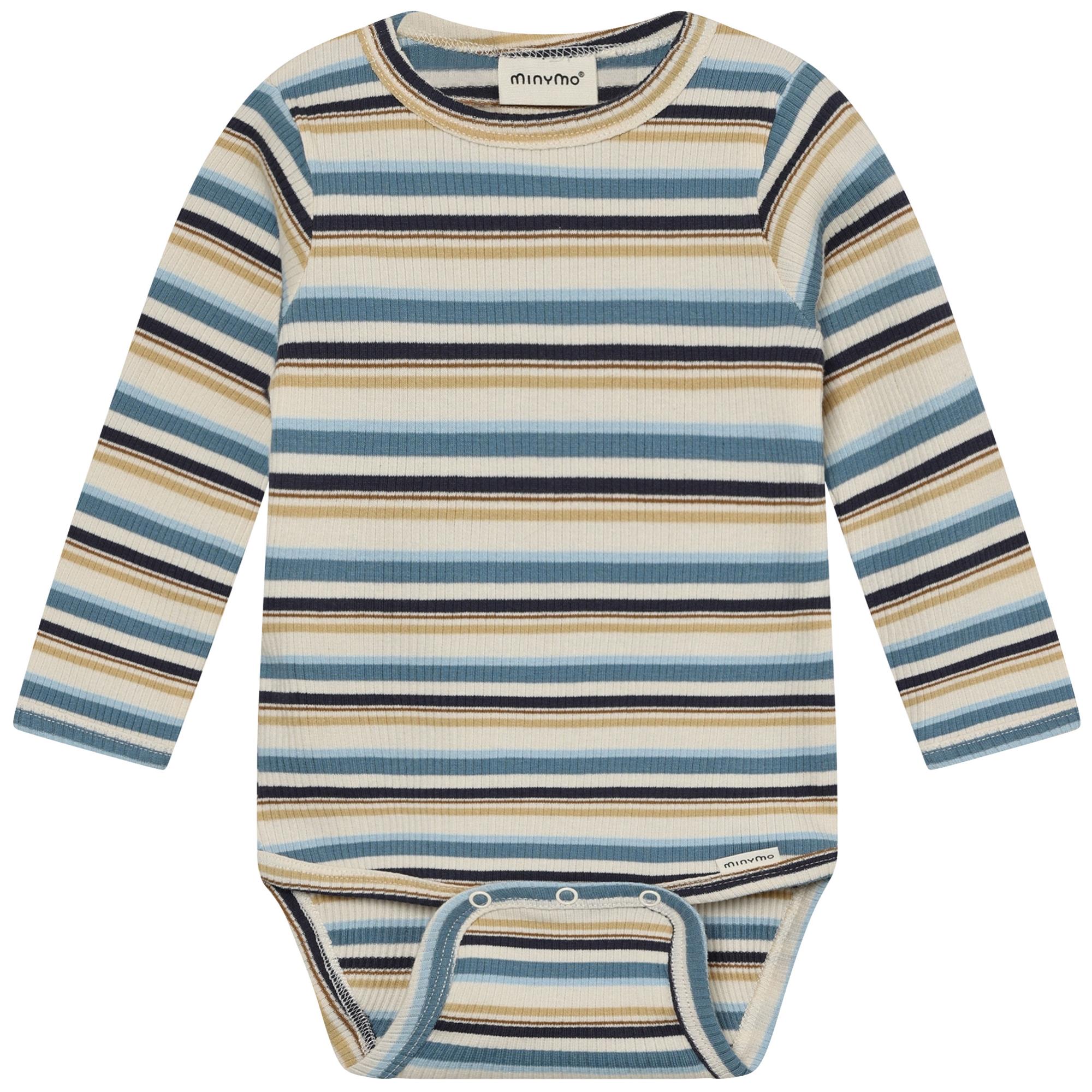 Minymo body rib stribet råhvid og blå - GOTS, str. 86