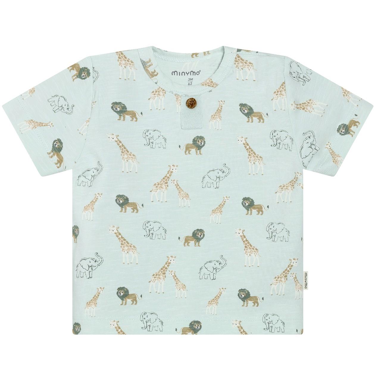 Minymo T-shirt mintgrøn med vilde dyr - GOTS, str. 86